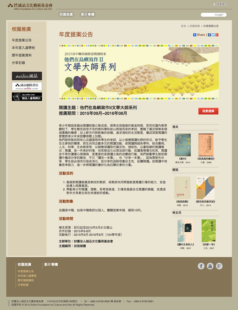 2015-06-04誠品文化藝術基金會「校品閱讀」網站製作。